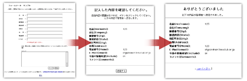 フォームメールとはHTMLフォームから入力された項目を、指定したメールアドレスへ送信するCGIです。