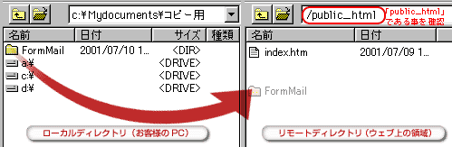 「public_html」ディレクトリの中に、「FormMail」フォルダをそのままドラッグ&ドロップしてください。