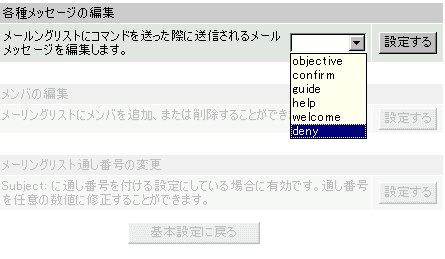 deny とはユーザが、メーリングリストのメンバでなく、コマンドや投稿が拒否された場合に返すエラーの文章です。