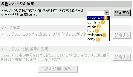 メーリングリストのコマンドリファレンス等のヘルプを記述します。通常はデフォルトをそのまま使用することを推奨します。 |